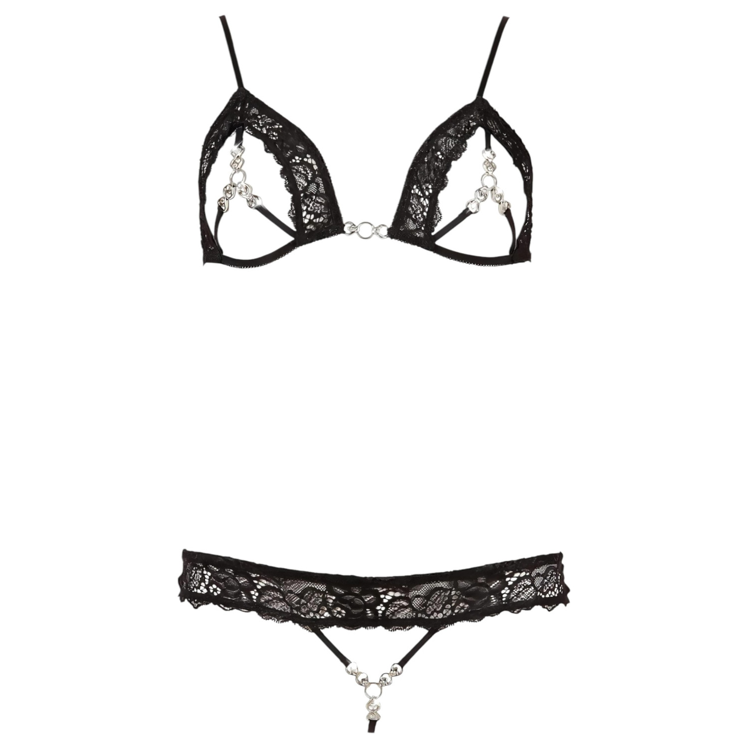 Det rhinsten pyntede blondesæt er en rigtig specialitet, der fremhæver din femininitet og giver dig selvtillid. Den åbne bund og den iøjnefaldende overdel er både modig og provokerende, mens det bløde, elastiske materiale sikrer en behagelig pasform. Det fine blondemønster forstærker luksusfølelsen med sine elegante detaljer.