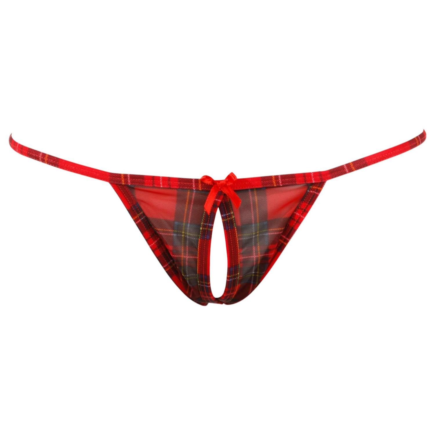 • Iøjnefaldende design: Det røde mønster og de hvide blonder giver et elegant og legende udtryk - mens den åbne g-streng tilfører et ekstra frækt twist.