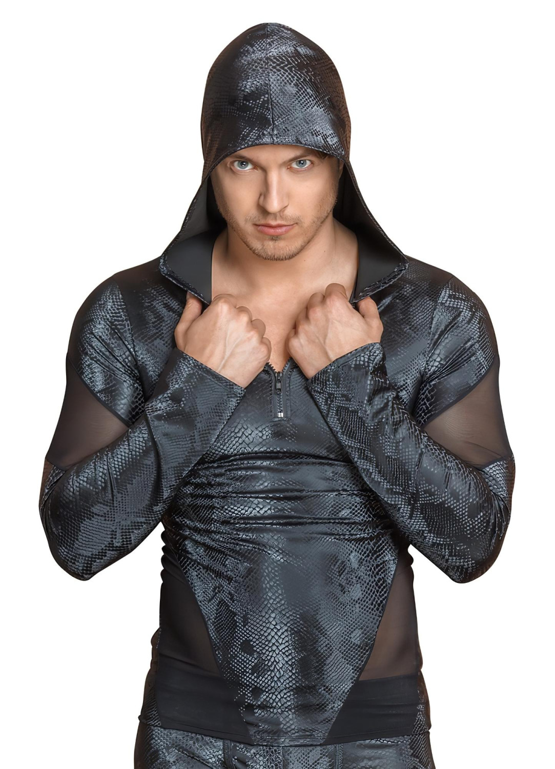 NEK - Herreoverdel med slangelook og hætte (sort)