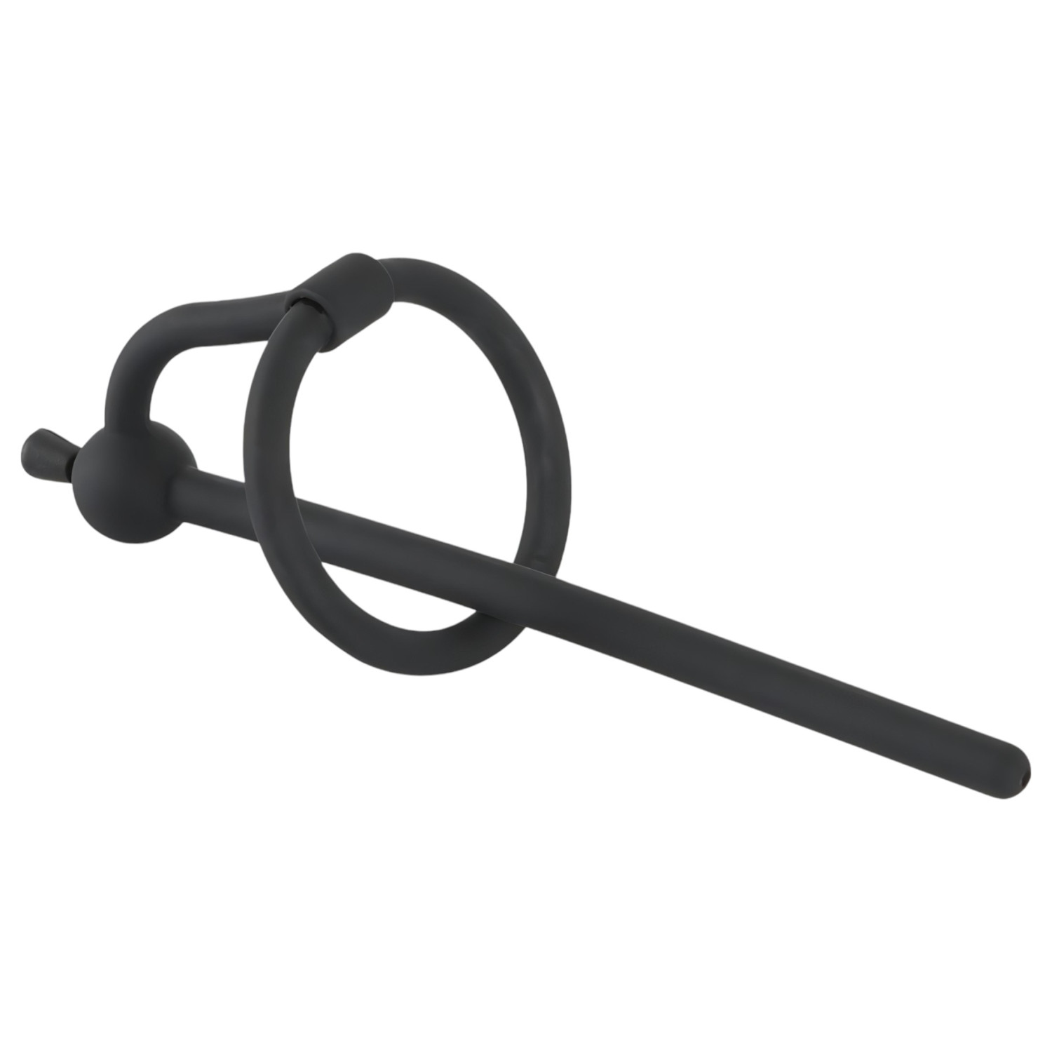 Penisplug - silikone dilator med glansring (0,6mm) - sort