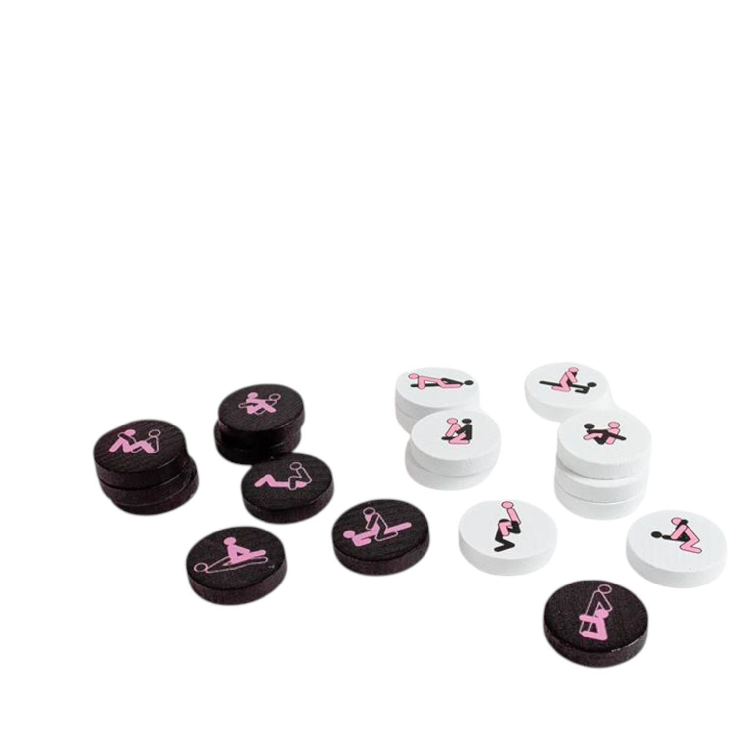 • 42 jetoner (21 hvide, 21 sorte - hver med sin egen Kamasutra-stilling)
