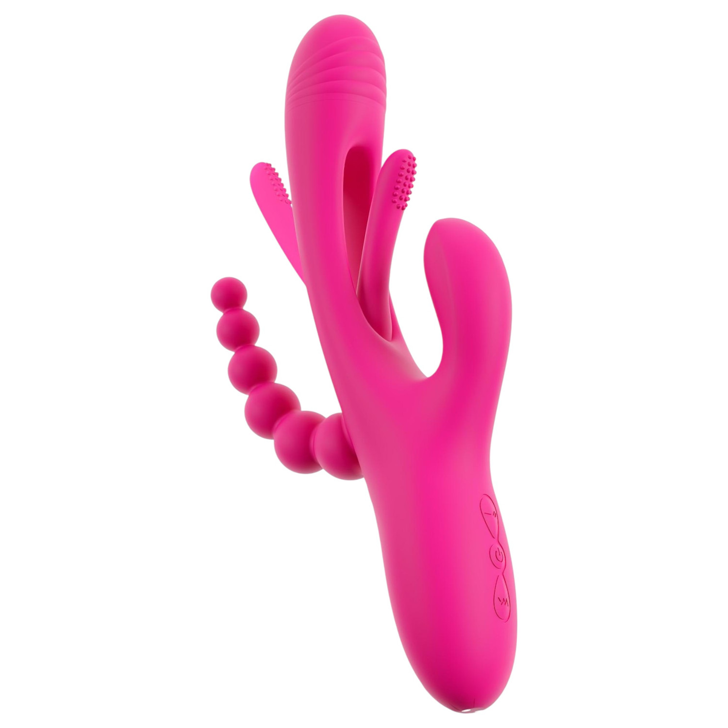 Oplev en tredobbelt nydelse med denne ergonomisk designede vibrator, der samtidig forkæler både vagina, klitoris og det anale område!
