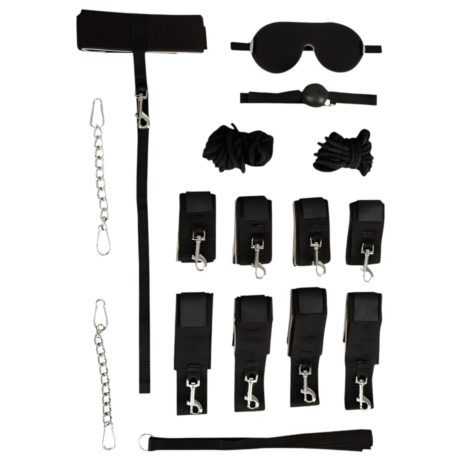 • Brug manchetter, kæder og reb til at udforske forskellige bondage-teknikker.